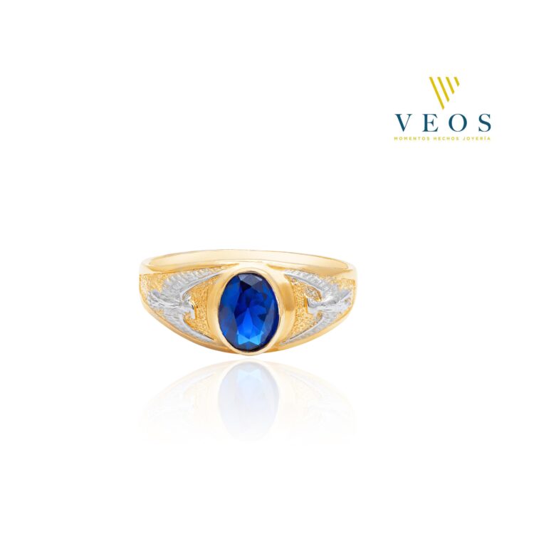 Anillo con águilas en lo laterales y piedra azul para caballero