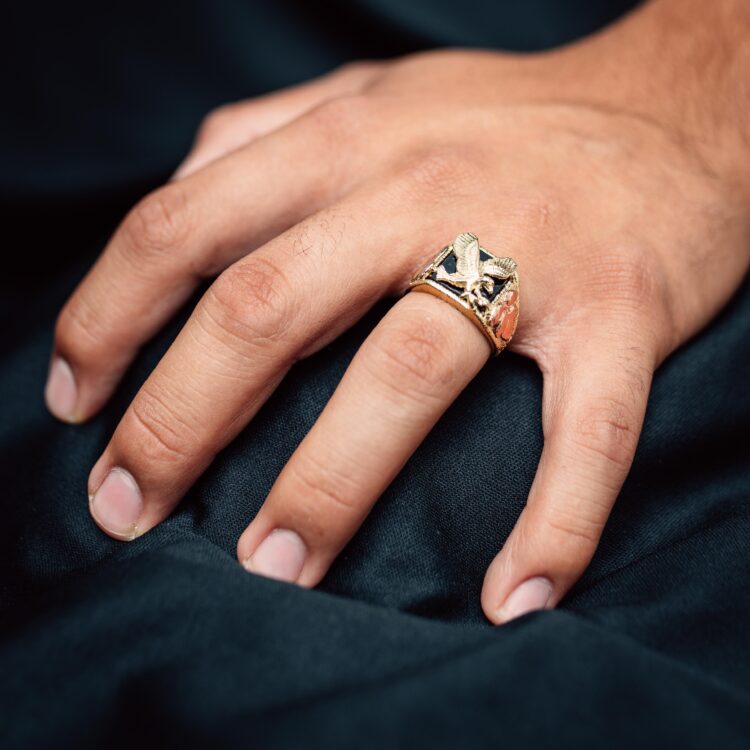Anillo florentino águila con piedra ónix