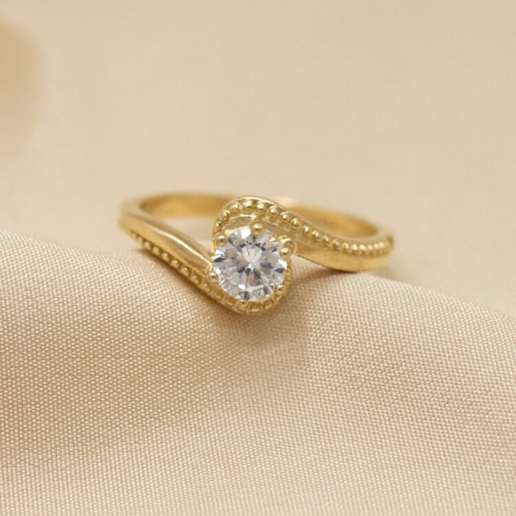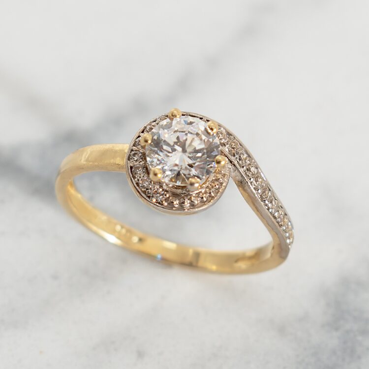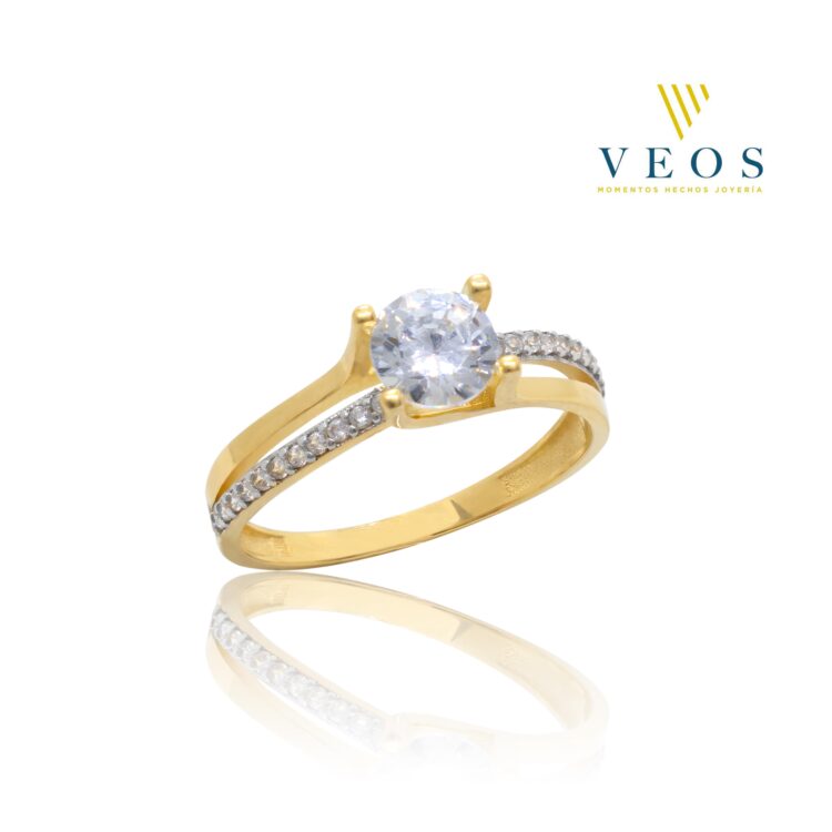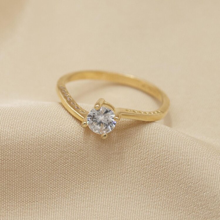 Anillo solitario curvo con zirconia